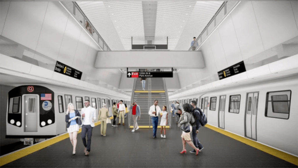 Rendering of the Q train platform planned for 125th Street and Lexington Avenue. New York MTA Construction & Development illustration.