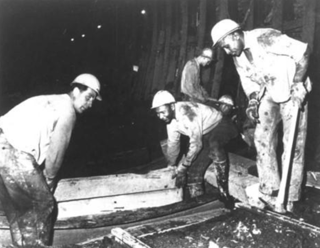 Construction began in 1965 as a joint venture of Peter Kiewit Sons’ Co.; Raymond International, Inc.; Tidewater Construction Corp.; and Healy-Tibbitts Construction Co. Together, they were known as the Trans-Bay Constructors. They kicked things off with a Tube groundbreaking ceremony in 1966 that featured a literal boatload of dignitaries watching a dredge bring up the first of more than 5.7 million cubic yards of Bay mud. It was groundbreaking in every sense of the word.