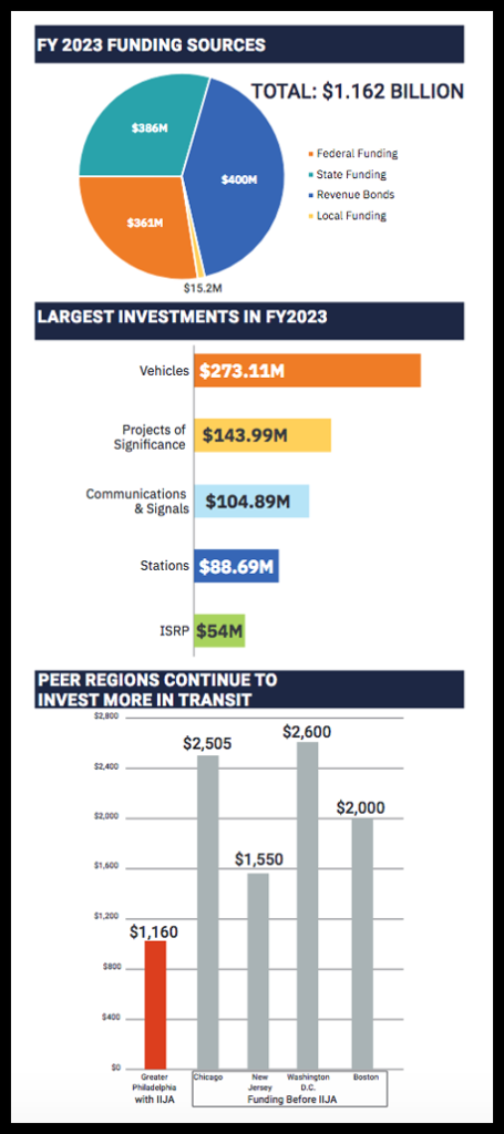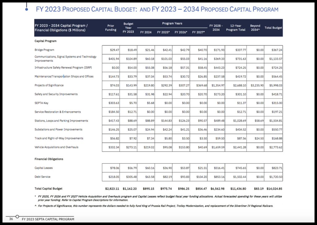 Southeastern Pennsylvania Transportation Authority (SEPTA) has proposed a $1.162 capital budget for Fiscal Year 2023—its “first to break the billion-dollar mark”—and a $11.4 billion 12-year plan.