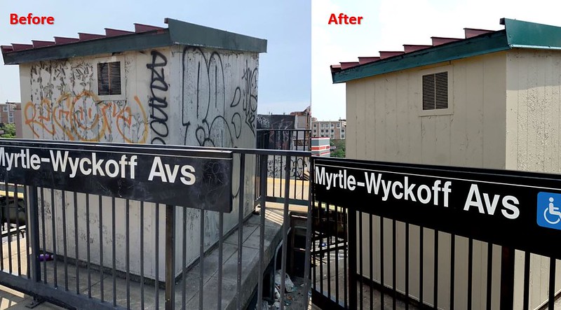 Myrtle Av-Wyckoff Av Station is the 31st station to be enhanced with an upcoming refurbishment planned at Kings Highway Station on the line. In total, NYCT plans to complete 50 “re-new-vations” by the end of the year.