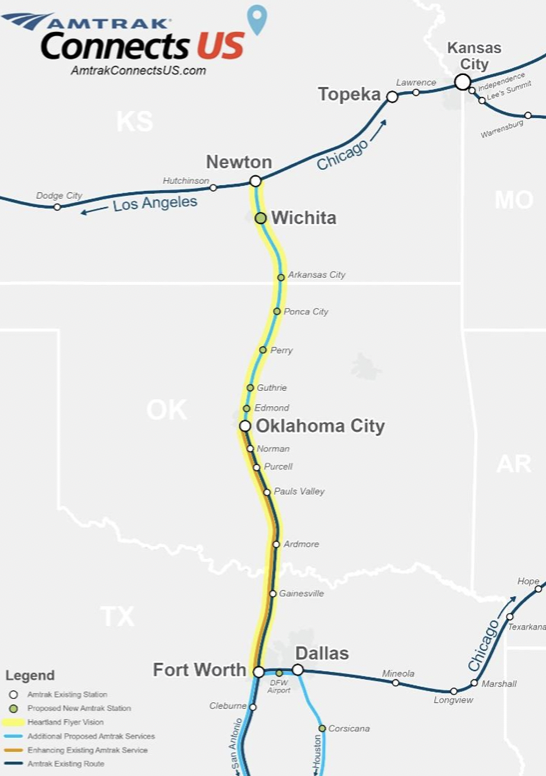 This Amtrak Heartland Flyer extension proposal was discussed at a recent Kansas Rail Caucus meeting.