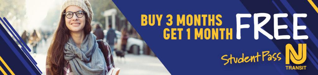To qualify for the “Buy 3 Months, Get 1 Month Free” promotion, a student at a partner college or university must buy a student monthly pass via the NJ Transit mobile app for three consecutive months: February, March and April of 2023. When the student completes the qualifying purchases in February, March and April, they will receive a Student Pass equal to the lowest-price purchase made in the previous three months and valid for transportation in May 2023.