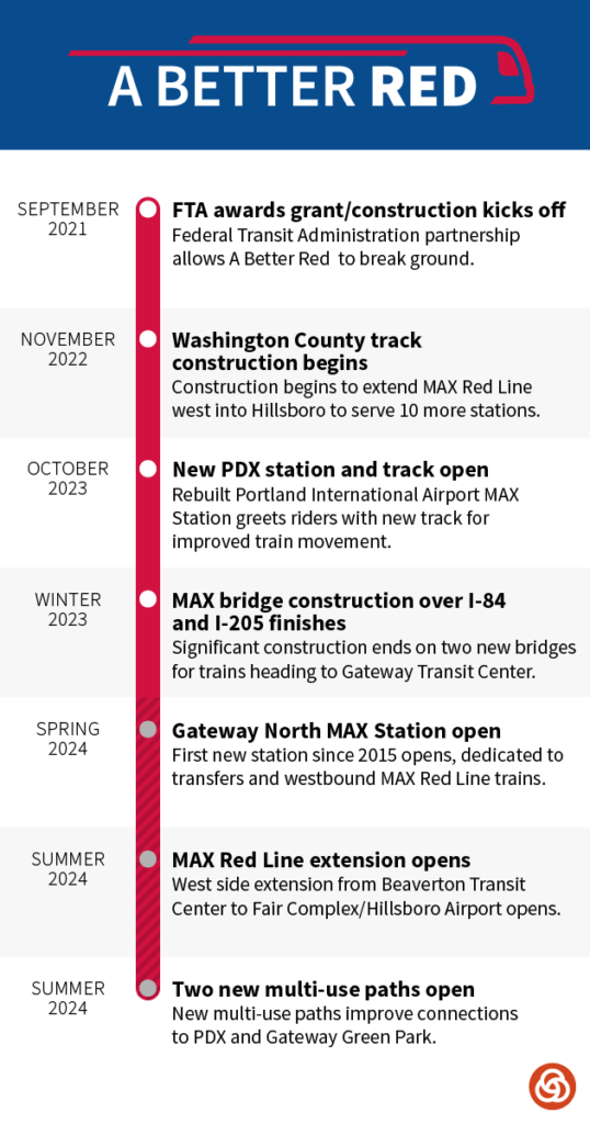 The re-opening of the Gateway Transit Center and grand opening of Gateway North mark the end of major construction of A Better Red on the east side. Since the project broke ground began in fall 2021, crews had been working on a series of major changes between Gateway and Portland International Airport, a stretch of the MAX system that is now more than two decades old.