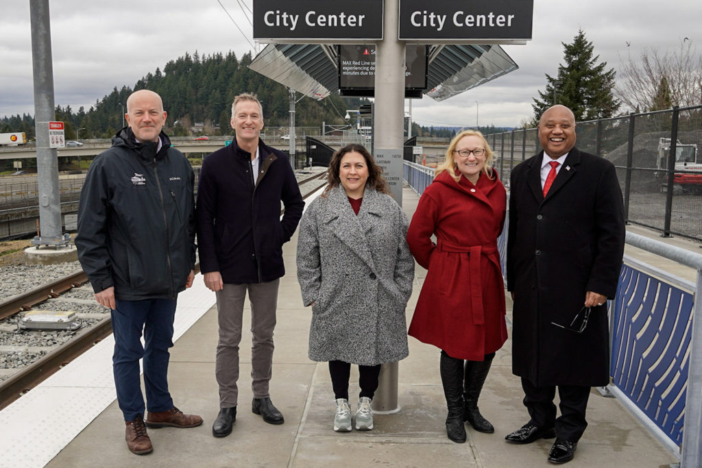 Community leaders, including TriMet General Manager Sam Desue Jr., Portland Mayor Ted Wheeler, Portland City Commissioner Carmen Rubio, Metro Council President Lynn Peterson and Port of Portland Executive Director Curtis Robinhold, were in attendance to celebrate not just the end of a weeks-long disruption to the MAX Blue, Green and Red lines, but also the conclusion of a major milestone in the multi-phased A Better Red MAX Extension and Reliability Improvements Project that began two and a half years ago.