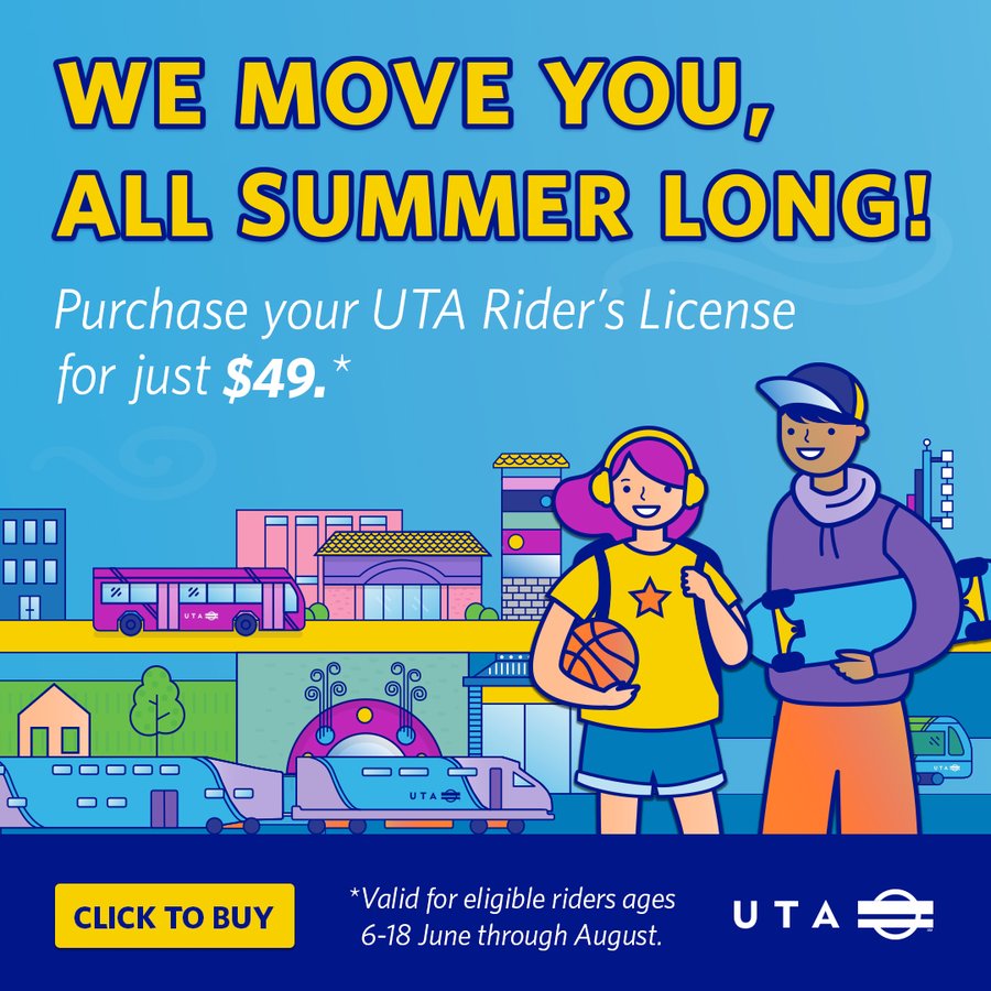 UTA announced June 7, via a Twitter post, that youth, ages 6-18, can now use their Rider’s License through Aug. 31 for unlimited rides on the agency’s FrontRunner, TRAX, streetcar and UTA On Demand and buses.