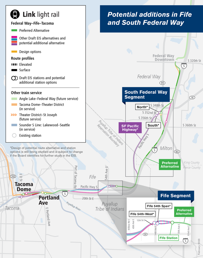 Sound Transit in December told The News Tribune “that a draft environmental study once planned for release in 2022 would be delayed,” according to the newspaper. “On Monday [Feb. 27], Sound Transit said it anticipates the draft report’s release in mid-2024 due to the extra time required to study the proposed changes. ‘We’re never happy to delay projects,’ Sound Transit spokesman David Jackson said Monday. ‘But in this case, it’s the smart thing to do.’”