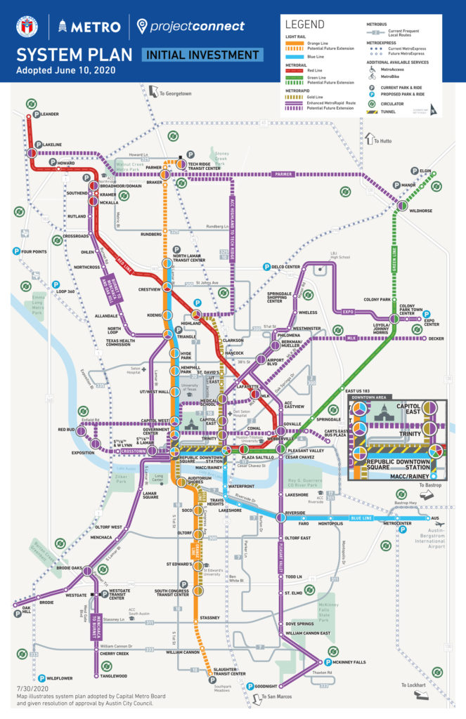 • Project Connect ($7.1 billion)*: A partnership between the city of Austin, Austin Transit Partnership, and Capital Metropolitan Transit Authority will expand and improve the public transportation network for the entire Central Texas region.