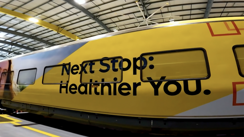 Brightline on Nov. 1 provided a first look at a four-coach Orlando Health-branded train. (Screen Grab from Brightline Video)