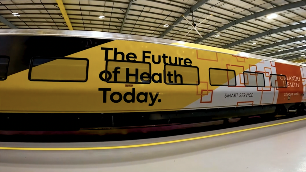 “The Orlando Health-branded Brightline train represents our partnership of connectivity, promotes health awareness and is our visual commitment to providing high-quality care,” said Andrew Snyder, Orlando Health Senior Vice President, Marketing and Communications. “Patients outside of Central Florida can access our world-class healthcare system through the region’s first high-speed rail system. We are excited to showcase our trailblazing collaboration with Brightline.”