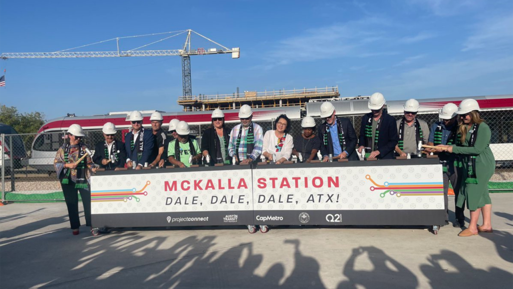 The Capital Metropolitan Transportation Authority (CapMetro) on July 18 broke ground on McKalla Station, a new regional rail transit station being constructed as part of the $7.1 billion Project Connect bus and rail transit improvement initiative. The station will be located on the east side of Q2 Stadium, near Delta Drive, on the MetroRail Red Line between Braker Lane and Rutland Drive. It is expected to open in fall 2023. Also to be constructed along the Red Line is the Broadmoor/Domain Station, which will replace the existing Kramer Station (see map below).