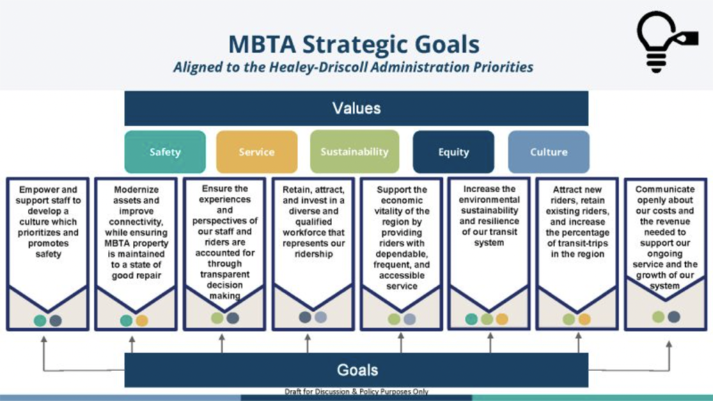 The goals—developed through a collaborative process with MBTA staff and stakeholders—are: