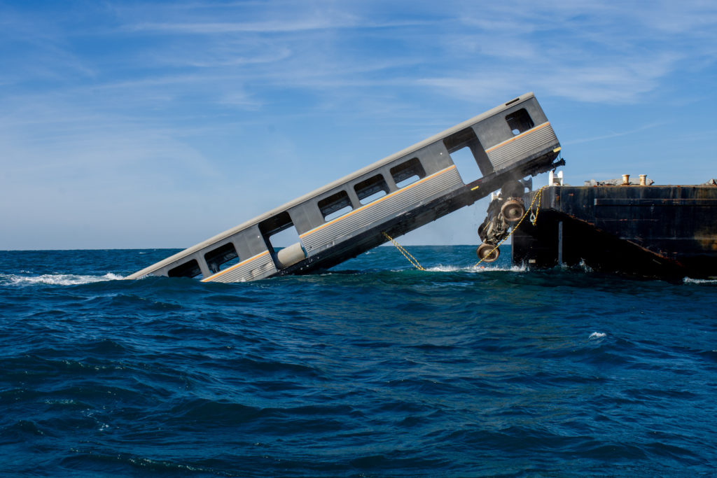Last December, the decommissioned railcars were stripped of hazardous materials and inspected by the U.S. Coast Guard before being transported by barge to Artificial Reef L, an established reef about two square miles in size, located approximately 23 nautical miles east of Ossabaw Island and deployed in about 55 to 65 feet of water.