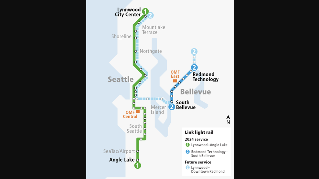 Another light rail project—the full 2 Line, from downtown Seattle to Mercer Island, Bellevue and Redmond—was originally scheduled to open before Lynnwood Link, but Sound Transit said it is now targeting 2025. Why does opening order matter? “Because the 2 Line connection over Lake Washington will allow trains to access to our new storage and maintenance base in Bellevue,” Sound Transit said. “And that connection is critical to achieving the frequency we’d originally planned for Lynnwood (trains arriving as often as every 4 minutes in peak periods). So with only half the planned storage and maintenance capacity until the full 2 Line opens, we’ll be working creatively to provide as much 1 Line service as possible … With some schedule adjustments, new storage solutions, and extra bus options, we’ll be able to retain current Link service levels and limit crowding during the busiest times of day. That will mean trains continuing to arrive about every 8 minutes—even as the 1 Line will grow 35% longer overnight.”