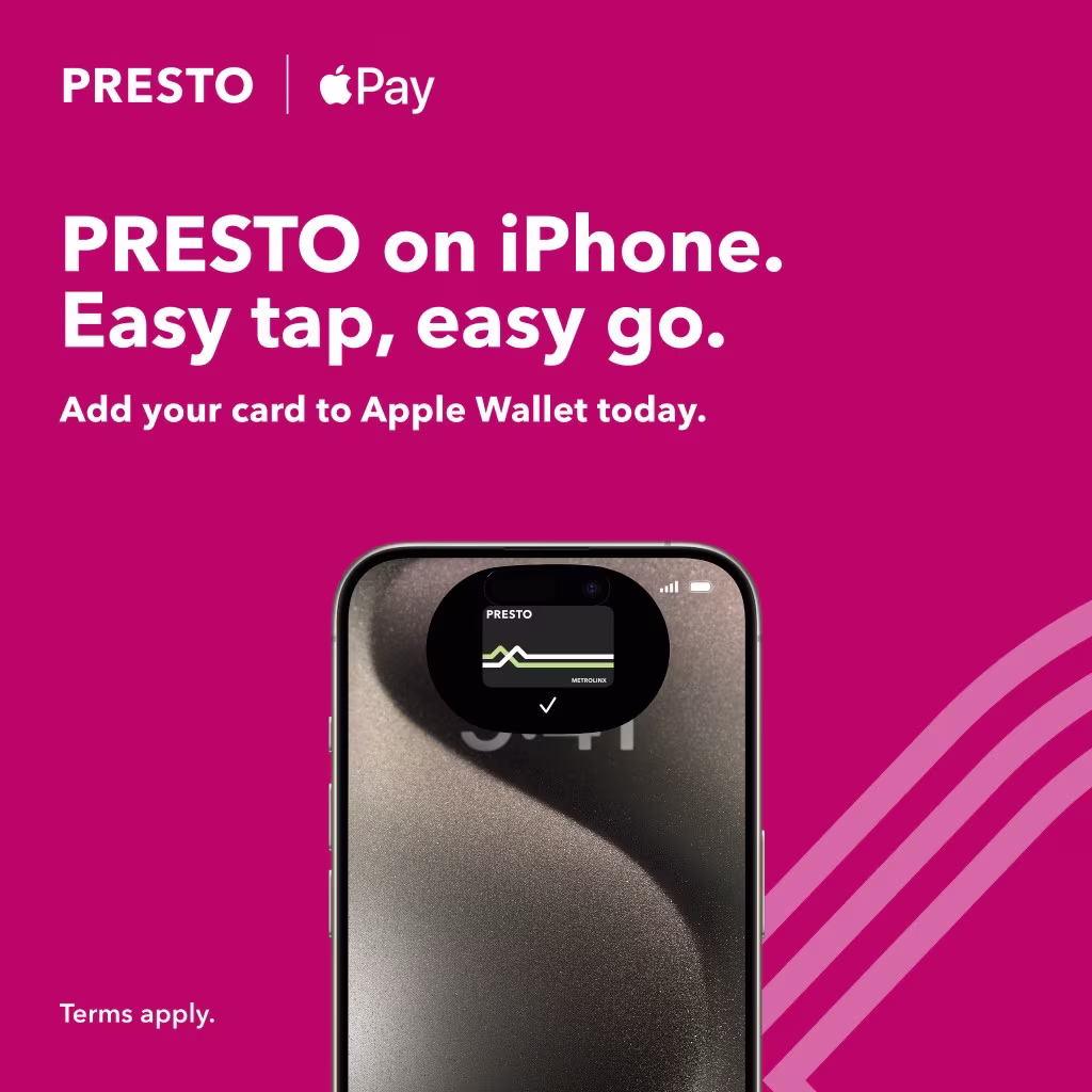 Beginning July 16, Metrolinx customers can add a PRESTO card to Apple Wallet and tap to ride using their iPhone or Apple Watch. This new feature brings even more ways to pay your fare across the region, the agency noted.