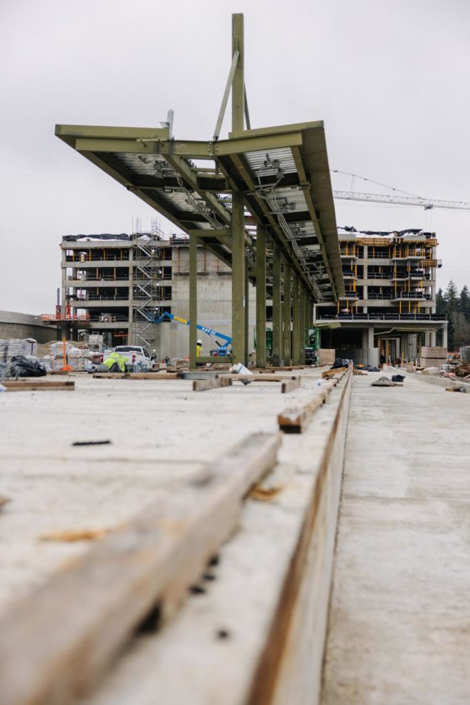 “This winter has been a busy time for light rail construction in Redmond, with a ton of progress made near the future Marymoor Village Station and garage,” Sound Transit said.