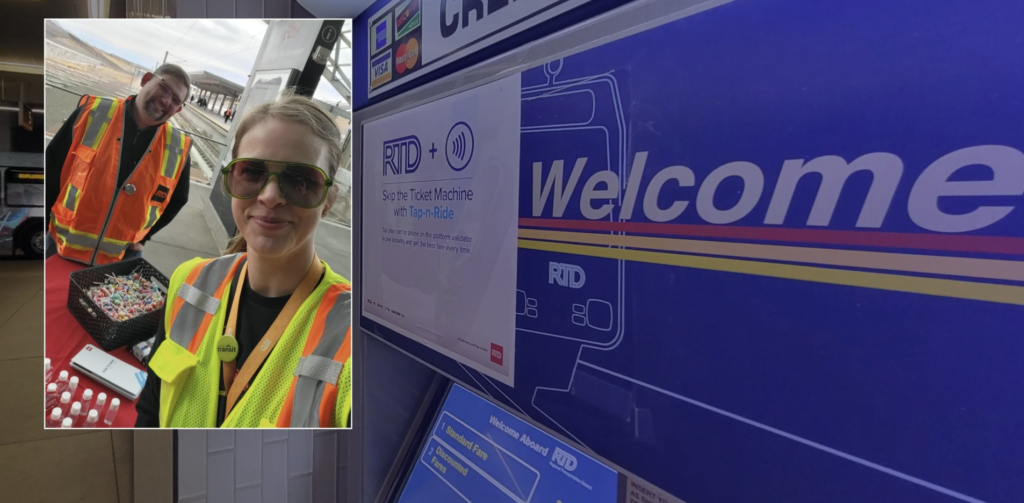 Denver RTD engaged with more than 375 customers traveling for spring break on Friday, March 13, helping them navigate the 23-mile “A” commuter rail line between Denver Union Station and Denver International Airport and learn about the new fare payment option, Tap-n-Ride, according to the agency.