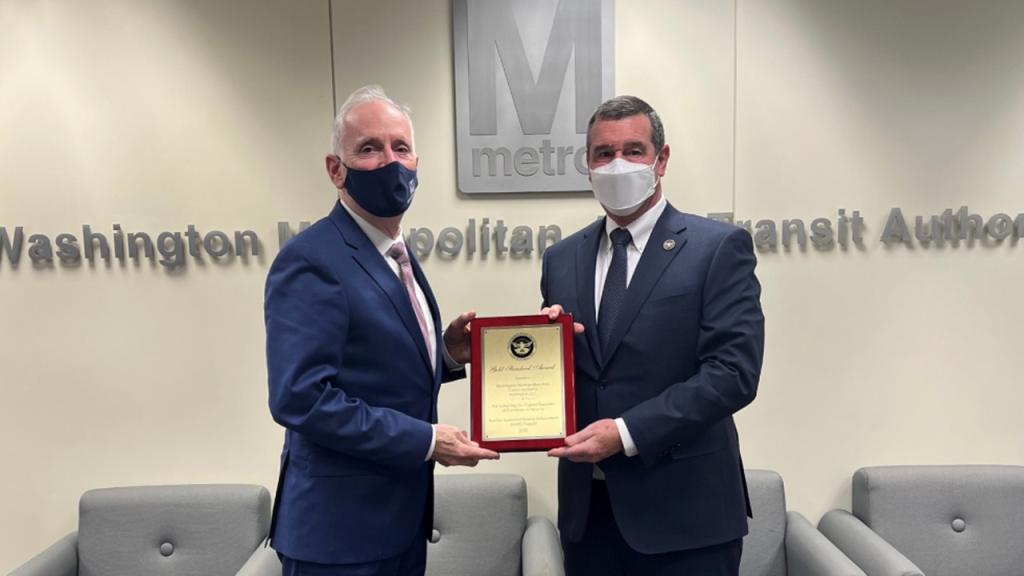 “Safety is Metro’s [WMATA’s] top priority, and this award recognizes the 24/7 effort to protect the National Capital Region from security threats,” General Manager/CEO Paul J. Wiedefeld said. “We appreciate the TSA’s work to keep Metro and transit agencies across the country safe, and we’ll remain vigilant and proactive to counter and prepare for any threats our region may face.”