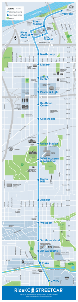 Earlier this fall, KCSA launched its 3.5-mile Main Street Extension, connecting downtown with the Midtown corridor, including the Country Club Plaza district, and ending at the Roos (see map of the current system, above left).