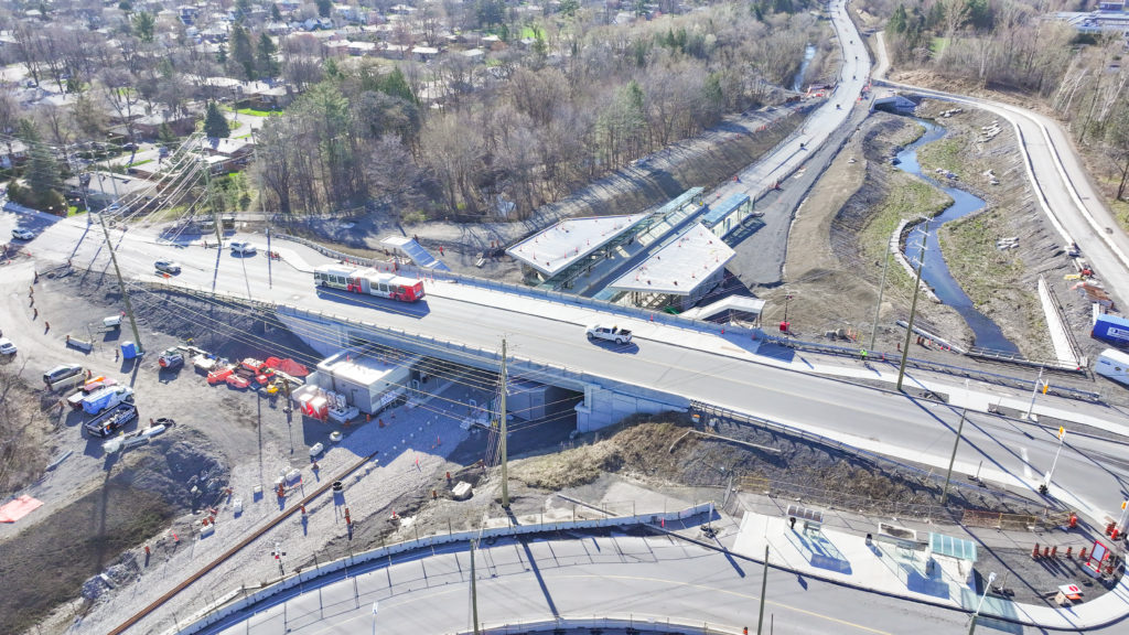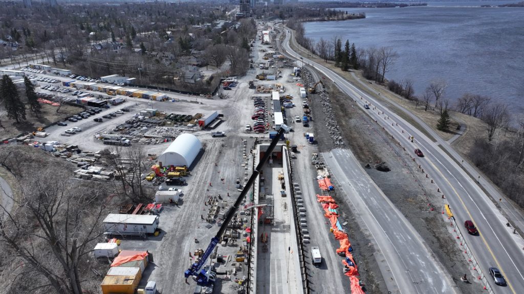 In the west, track installation and station construction “continues to progress,” according to the agency. The cut and cover tunnels are moving forward with structure work mostly complete, and preparations are now under way for installing track in the tunnels at Connaught Park and Byron Linear Park. This summer, the Pinecrest Stormwater Management Pond will open. This new facility, OC Transpo says, “will help manage stormwater in the community and mitigate the impacts of stormwater runoff to the Ottawa River.”