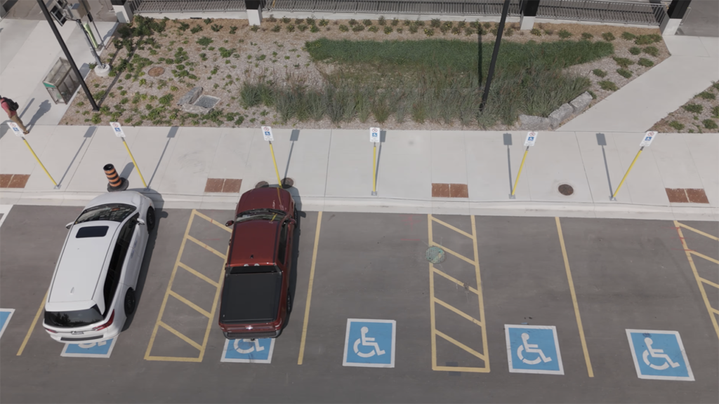 • Barrier-free accessibility parking spaces in the south parking lot.