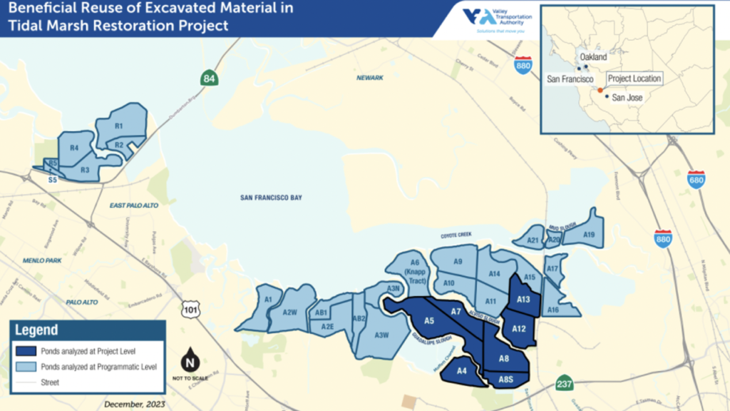 The grant award, SCVTA reported, is for the design phase of the project, identifying methodologies for transport and placement of the material into the ponds. The project is a collaborative effort among SCVTA, U.S. Fish and Wildlife Service, and Valley Water. It was previously awarded a $1.5 million grant from the California State Coastal Conservatory for the environmental and permitting phases.