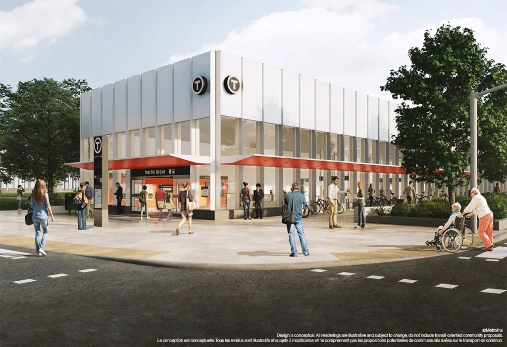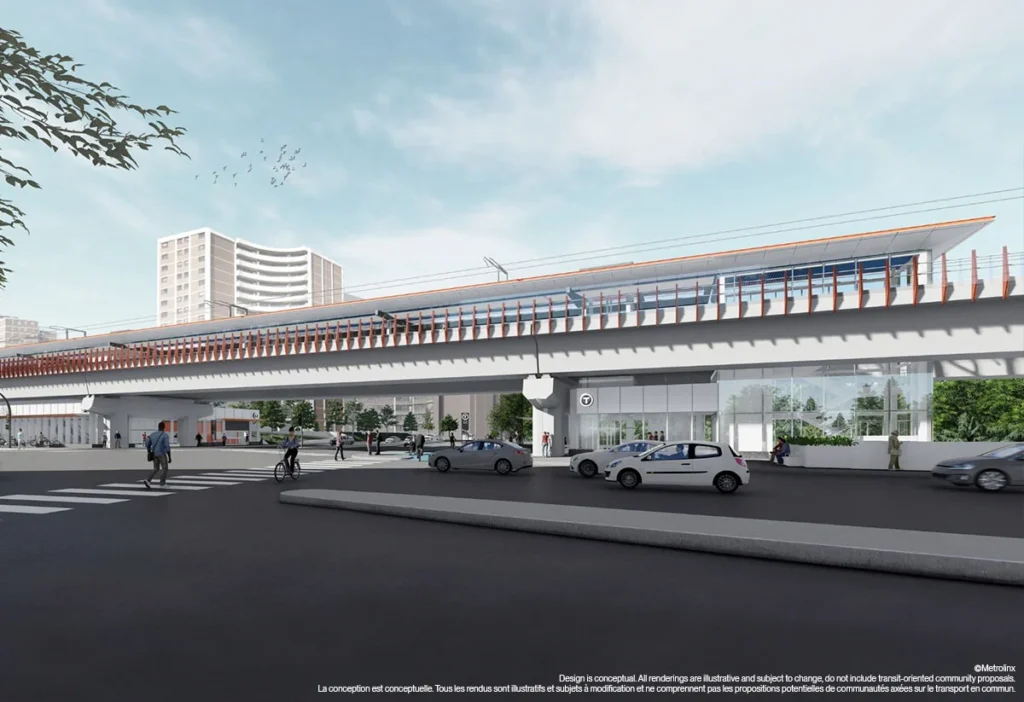 The scope of work for the project’s SRS package includes design and construction of seven stations and installation of rail and systems for the 9.2-kilometer (5-7-mile) extension and works at the existing Mount Dennis Station to connect the ECWE with future Line 5 Eglinton LRT service.