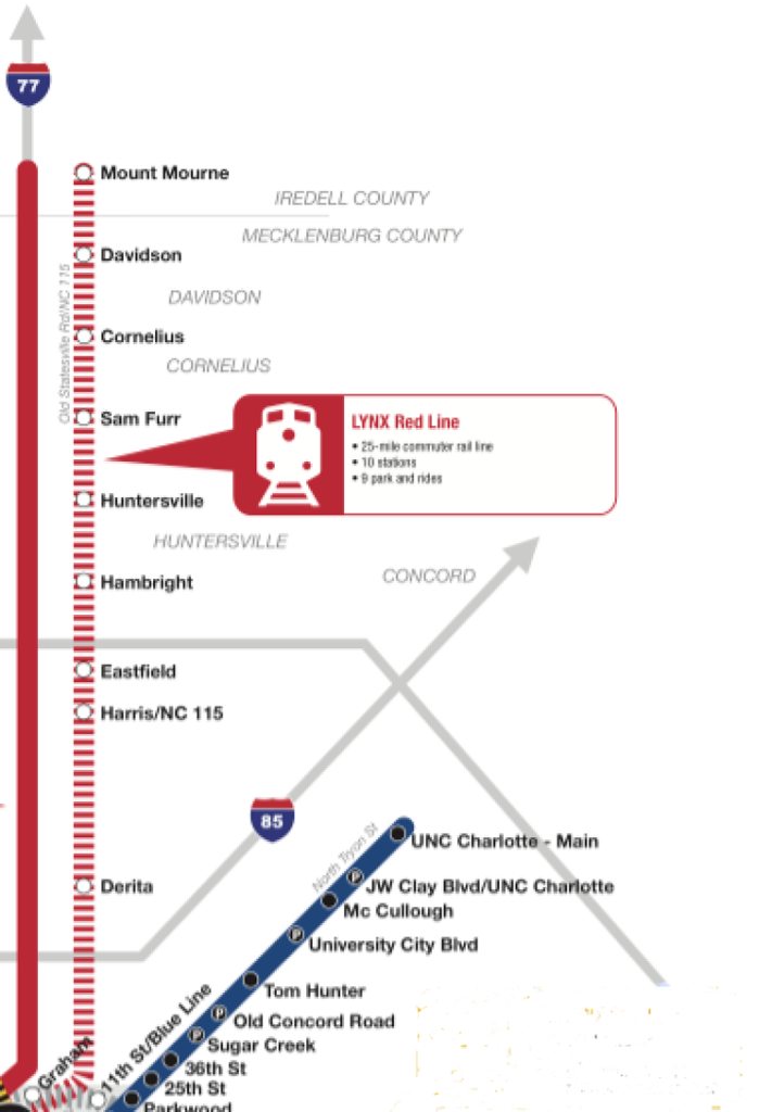 LYNX Red Line map, taken from the CATS 2030 System Plan