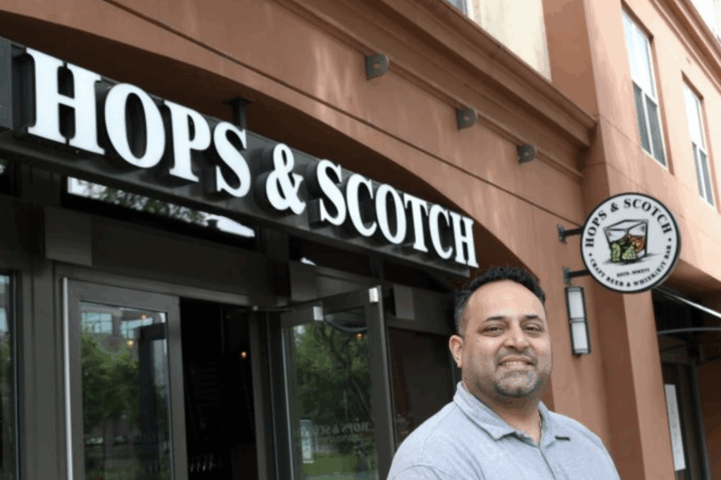 Baldeep and Gurpreet Sangha own two businesses by the station – the bar Hops & Scotch and the pizza-and-pints place Bill & Bali’s. They’re just around the corner from each other.