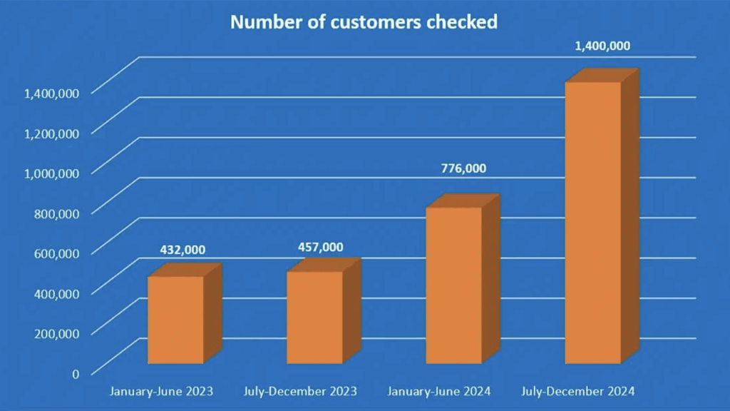 - In second-half 2024, fare enforcement checks increased by 80% compared with the first half of 2024. TransLink noted that in second-half 2024, fare enforcement checks tripled compared with the last six months of 2023.