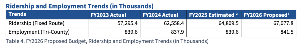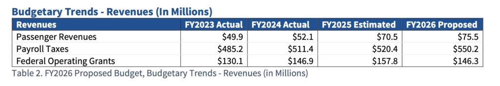 The transit agency said it has “updated our financial forecasts, evaluated revenue assumptions, and analyzed multiple funding scenarios to prepare for potential funding cuts.” Given the “uncertainty at the federal level—where grants have been frozen and FTA staff reductions have occurred,” it reported, “we are increasing the budgeted amount of contingency funds to allow time to adjust, if needed.