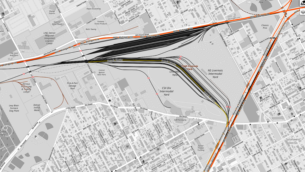 A $112 million project to provide a comprehensive overhaul of Norfolk Southern’s Livernois Intermodal Facility (LMF) in Detroit, Mich., is made possible by the CRISI grant program and supported by the BIL. It will enhance rail infrastructure in Southeast Michigan, promoting economic growth, improving reliability and advancing environmental sustainability across the state. The $67 million CRISI award will be matched by $45 million in funding from Norfolk Southern, MDOT (Michigan DOT) and the City of Detroit for a total investment of $112 million in the IMF. The objective is to enhance LMF’s infrastructure, ensuring long-term operational efficiency., cut emissions, improve efficiency, support supply chains, and lessen environmental impacts on surrounding neighborhoods. Planning documents outline a requirement to install 17,200 feet of new track to improve freight handling and streamline rail operations. Diesel gantry cranes will be replaced with hybrid and electric models that meet current technical standards. Yard paving will be upgraded to reinforce structural durability. Advanced yard automation and digital signaling systems will be installed to address logistical challenges and improve operational consistency. The updates are critical for maintaining reliability across the freight network and providing alignment with regulatory standards. When completed, the project will enhance multimodal transport and provide efficient integration between rail and road systems. Construction is scheduled for 2025.