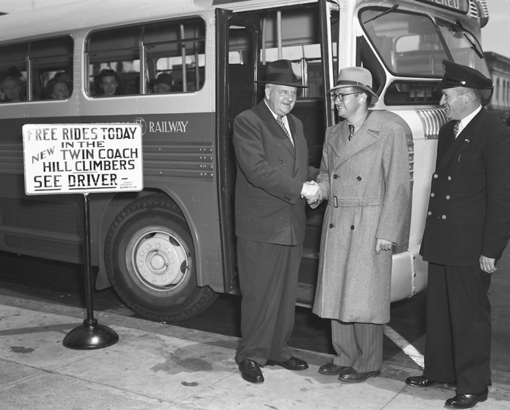 In the mid 1940s, San Francisco’s transit system was undergoing major changes. The entire system was in poor condition following World War II. City officials and then Mayor Roger Lapham looked to reduce costs by replacing old worn rail lines with new buses. Included in this plan was the Powell Street cable car lines, which were scheduled to be replaced with buses in 1947.