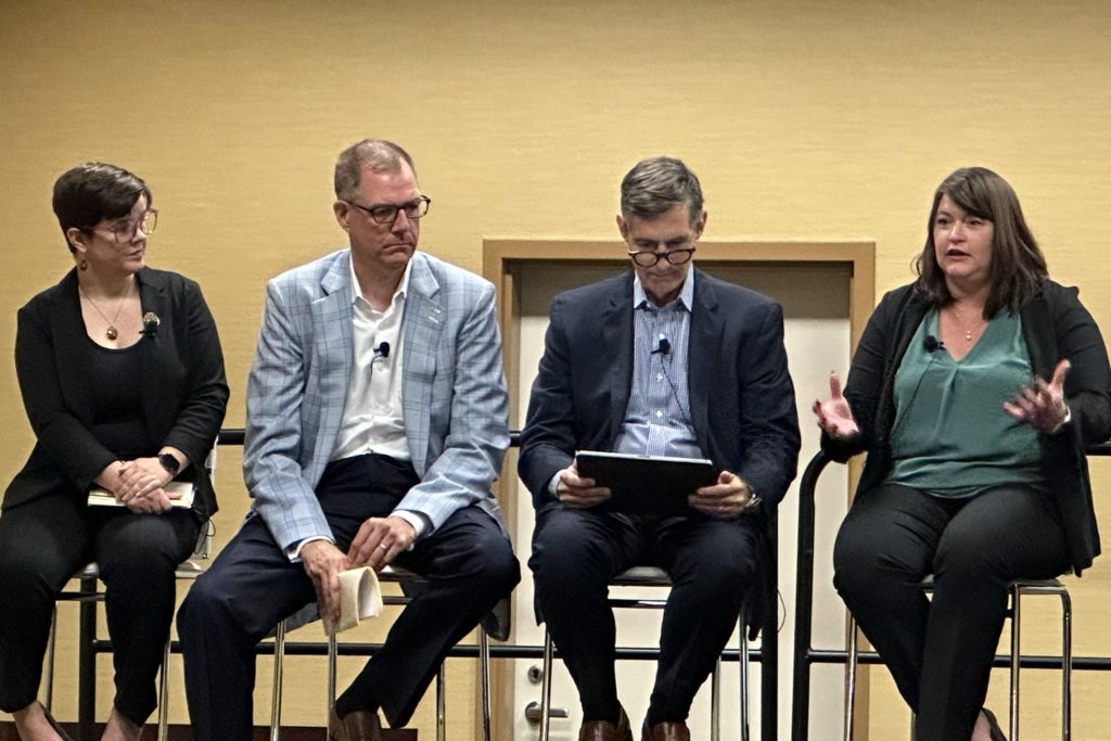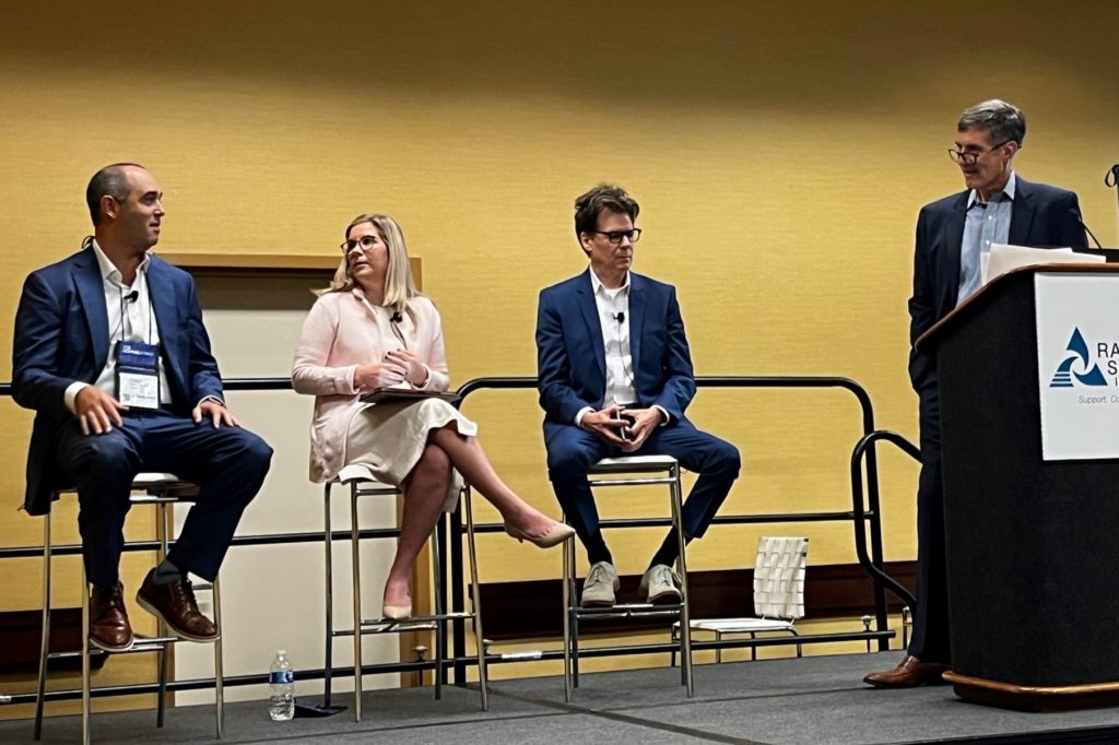Chuck Baker (far left) spoke about IIJA grant opportunities during a panel moderated by ASLRRA member Wabtec’s Peter Thomas.