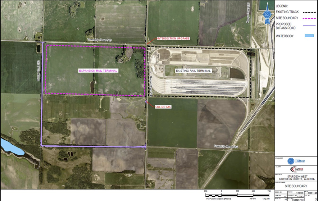 Cando Rail & Terminals is proposing to expand by approximately 321 acres its Sturgeon terminal in Alberta.