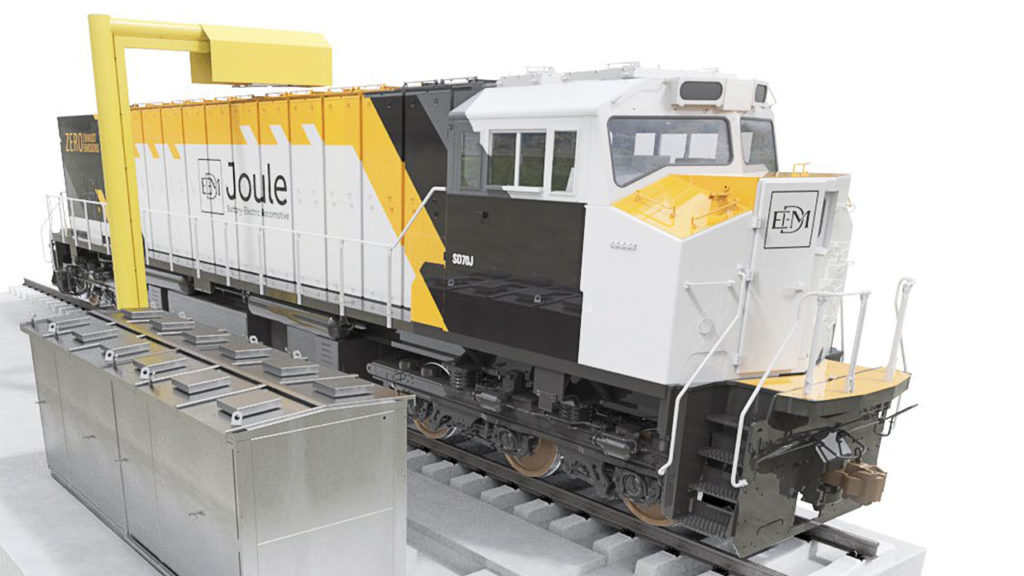 The crown jewel of Progress Rail’s alternative propulsion initiatives, the aptly named EMD® Joule is available in five configurations, new or repowered (“R” nomenclature): SD70J (6 axles, 8.0 MWh maximum battery capacity); SD70J-BB (8 axles, 14.5 MWh); SD40JR (6 axles, 4.0 MWh); GT38JB (4 axles, 4.0 MWh); GT38JC (6 axles, 4.0 MWh). These units all feature regenerative braking for battery recharging. Customers can specify what they desire in MWh, up to the maximum rating. The modular EMD® Joule Charging Station provides stationary charging in 700- and 1,400-kW configurations.