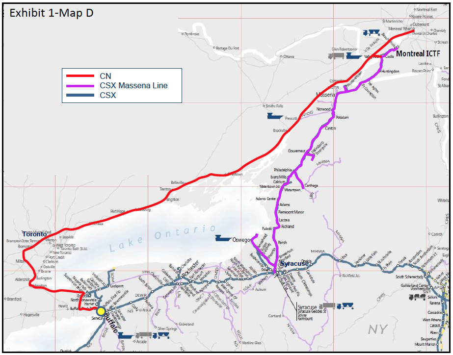 “CN is taking on a Montreal-Syracuse market challenge that obviously CSX doesn’t see as a necessary core part of its network freight vision,” comments railroad economist and Railway Age Contributing Editor Jim Blaze. “But, CN seeks local connection to the Syracuse area sshort line for marginal traffic into Canada, which CSX appears to be exiting. STB Commissioner Fuchs