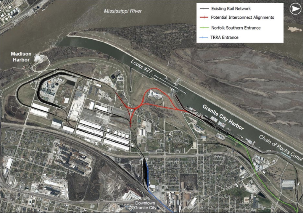- Illinois: America’s Central Port’s (Madison County) Interconnect Track Planning Project—The Port will receive $550,000 to plan “a freight rail connection for the interconnect track to link the Port’s Granite City Harbor, which is located north of Locks #27 on the Mississippi River, with the Madison Harbor, which is located south of the Locks,” USDOT reported. Activities will include public engagement, a feasibility study, review of any existing work, preliminary design, and a benefit cost analysis. “The proposed ‘Y’ interchange will allow unit trains at both harbors to turn around and access all six Class I railroads in the country, as well as allow for more efficient rail movements and additional storage,” USDOT said. “The study will assess how the new Interconnect Track will impact the various at-grade crossings both on the Port property and along the Class I rail track junction, which will feed into both harbor facilities. Processing unit trainsets within the Port is anticipated to result in the reduction of nonmotorized and motorized traveler safety risks by minimizing at-grade rail crossings. By improving the effectiveness and efficiency of rail movements, the interconnect track will promote mode shift from medium and heavy-duty vehicles to rail transport, a mode which emits less greenhouse gas emissions.”