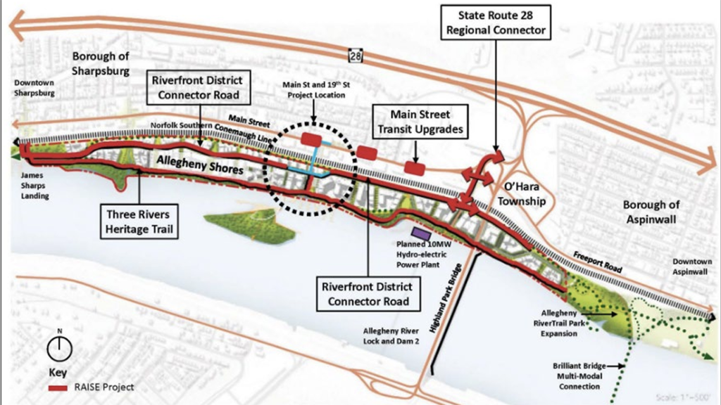 - Pennsylvania: Borough of Sharpsburg’s Reconnecting the Allegheny Riverfront to Economic Opportunity Project—The Borough will receive $25 million to plan, design, and construct an approximately 300-foot bridge over the Conemaugh rail line; approximately 0.71 miles of road that connects to the riverfront district; approximately 1.19 miles of multi-use trail on the shoreline of the river; and improvements to approximately six bus stops along Main Street. “Safety will be addressed by protecting non-motorized travelers from safety risks through the construction of sidewalks and rail crossing where there currently are none,” USDOT reported. “Quality of life will be addressed by increasing affordable transit options by improving access to Pittsburg Regional Transit’s Route #1 and Route #91. The project will also reduce transportation and housing cost burdens. Mobility and community connectivity will be addressed by bridging an impassable section of rail line that divides the Borough of Sharpsburg. Removing this barrier will result in a continuous active transportation facility that connects to neighboring towns and provides a direct link to the Three Rivers Heritage Trail which had one million users in 2022.”