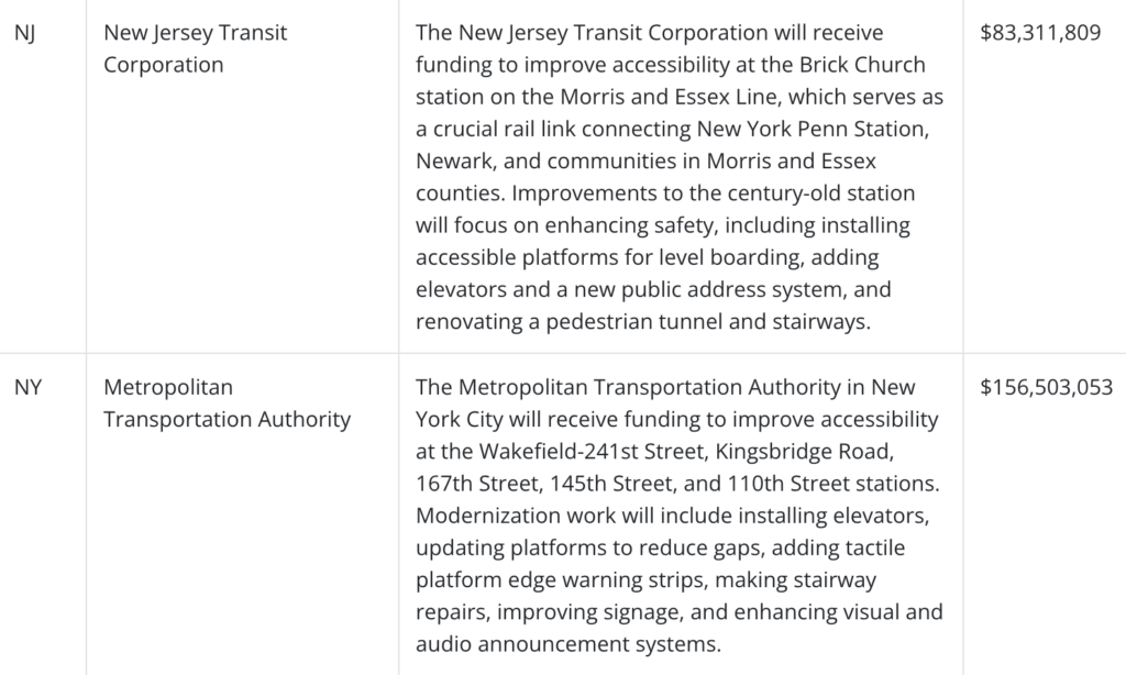 The funding is provided through FTA’s Fiscal Year (FY) 2024 All Stations Accessibility Program (ASAP).