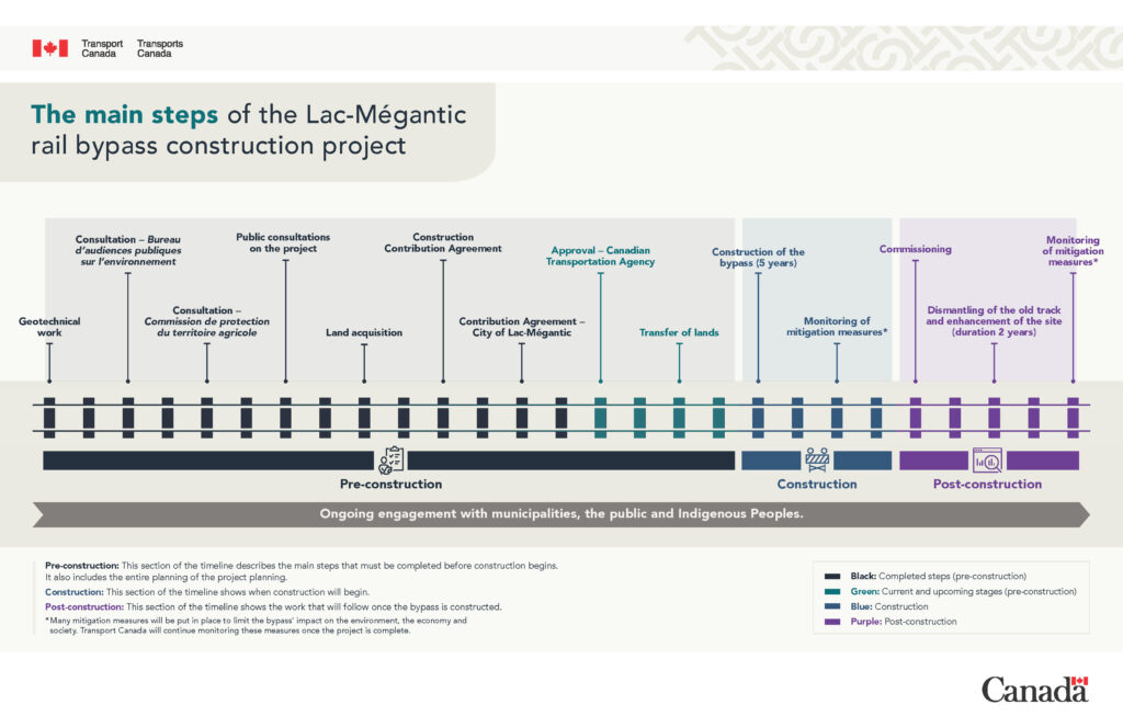“We will remove the railroad tracks from downtown Lac-Mégantic,” said Steven MacKinnon, Minister of Transport and Leader of the Government in the House of Commons. “The bypass project is becoming increasingly concrete now that the project’s application was officially submitted to CTA. All the information required to assess the project and start the public consultation process is now available to the CTA. We will be ready to go as soon as the application is approved by the CTA.”