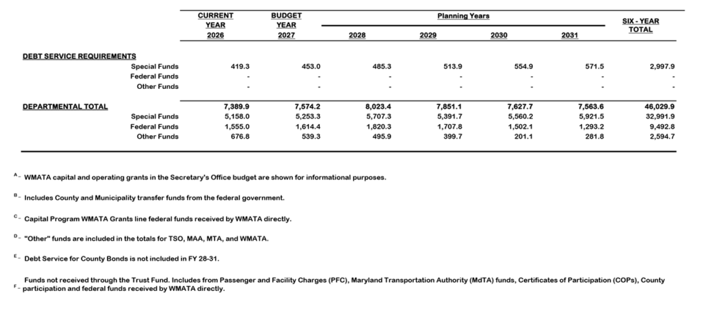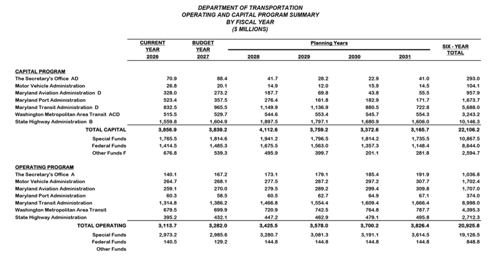 According to MDOT, the FY 2027 budget by the Governor requires approval by the Maryland General Assembly during the 2026 Legislative Session.