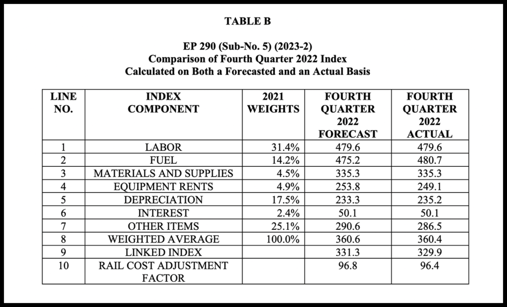 STB: Rail Cost Adjustment Factor Set for 2Q23