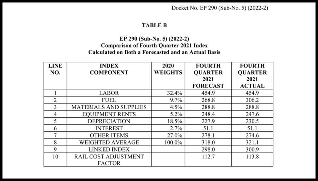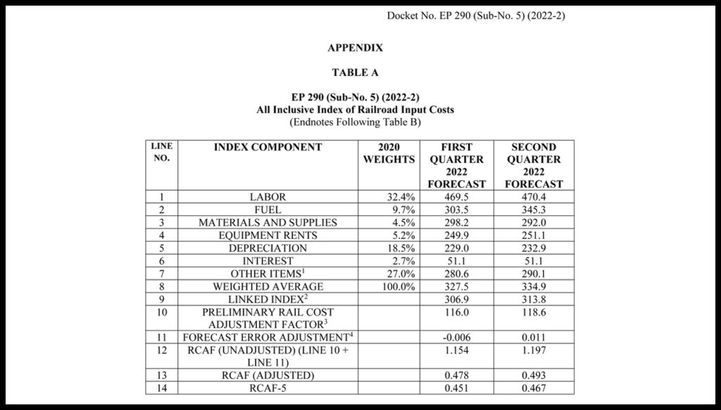 STB Sets 2Q22 Rail Cost Adjustment Factor