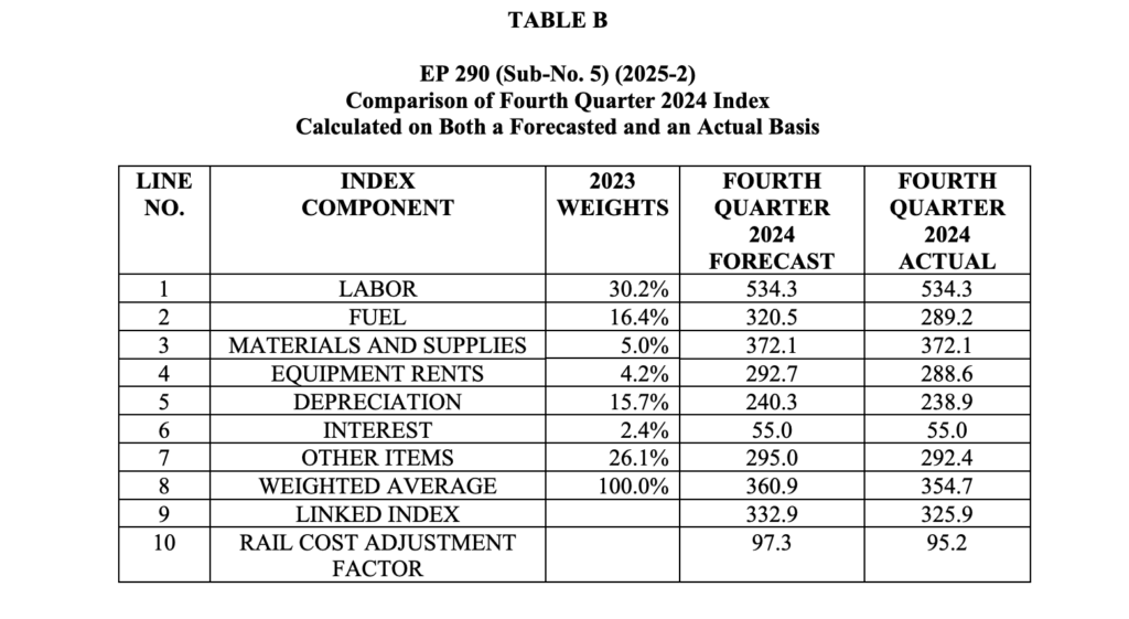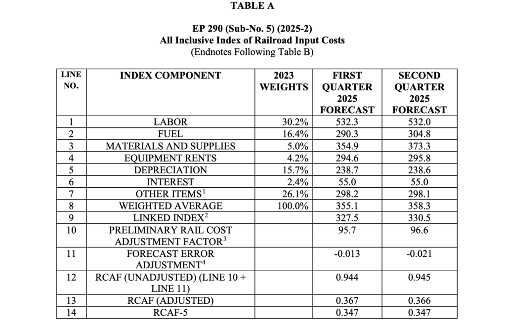 STB Sets 2Q25 Rail Cost Adjustment Factor