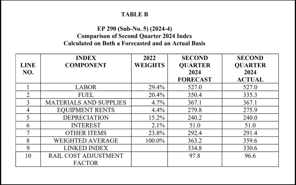 STB Sets 4Q24 Rail Cost Adjustment Factor