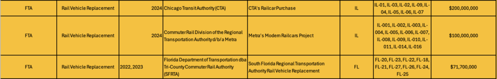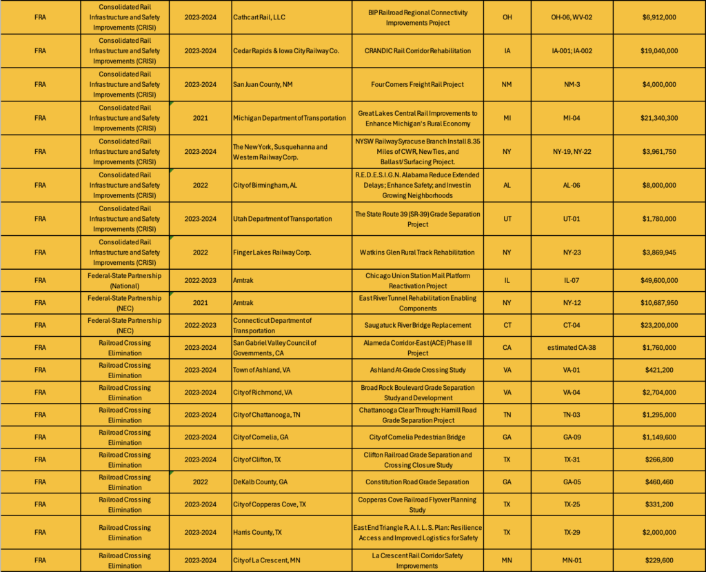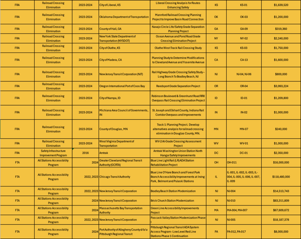 Following is a detailed breakdown of the 47 rail-related projects that will now receive grants: