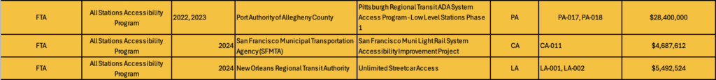 Below is breakdown of grants that other USDOT operating administrations will distribute.