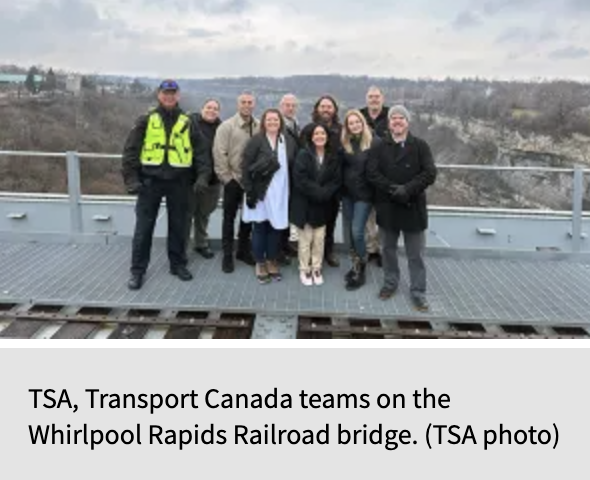 “Last month, we participated in a tabletop training exercise with Transportation Security Administration (TSA), VIA Rail Canada, Amtrak and Niagara Regional Police Service (NRPS), among other partners, to bring together transportation and security partners,” Transport Canada reported in a Jan. 22 LinkedIn post. “The discussions included how governments, industry, and first responders can strengthen coordination, communication and response to security incidents within the rail transportation sector.” (TSA Photograph, Courtesy of Transport Canada)