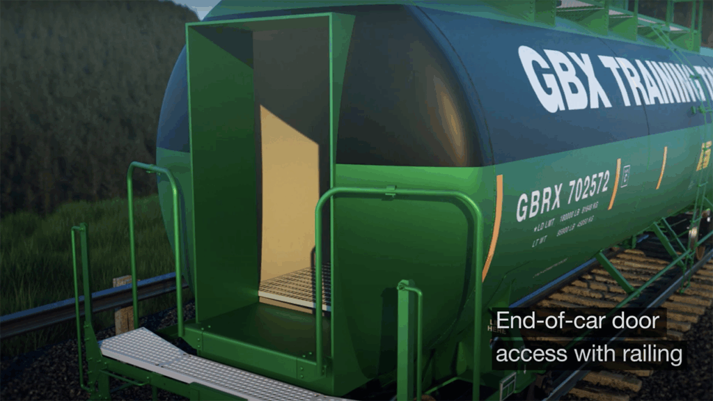 The GBX Training Tank Car™ (see video below) is equipped with the “latest tank car components, safety features and real-world instruction tools,” according to the company, which designs, builds, and markets freight railcars in North America, Europe, and Brazil, and provides railcar management, maintenance, freight railcar leasing, and fleet management services.