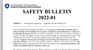 The Federal Railroad Administration (FRA) on Dec. 29 issued a safety advisory to make the rail industry aware “of a recent issue encountered by a train crew that experienced an unintended brake release of a train’s automatic air brakes while stopped at a signal,” and to recommend four steps to address the unintended release of train air brakes.
